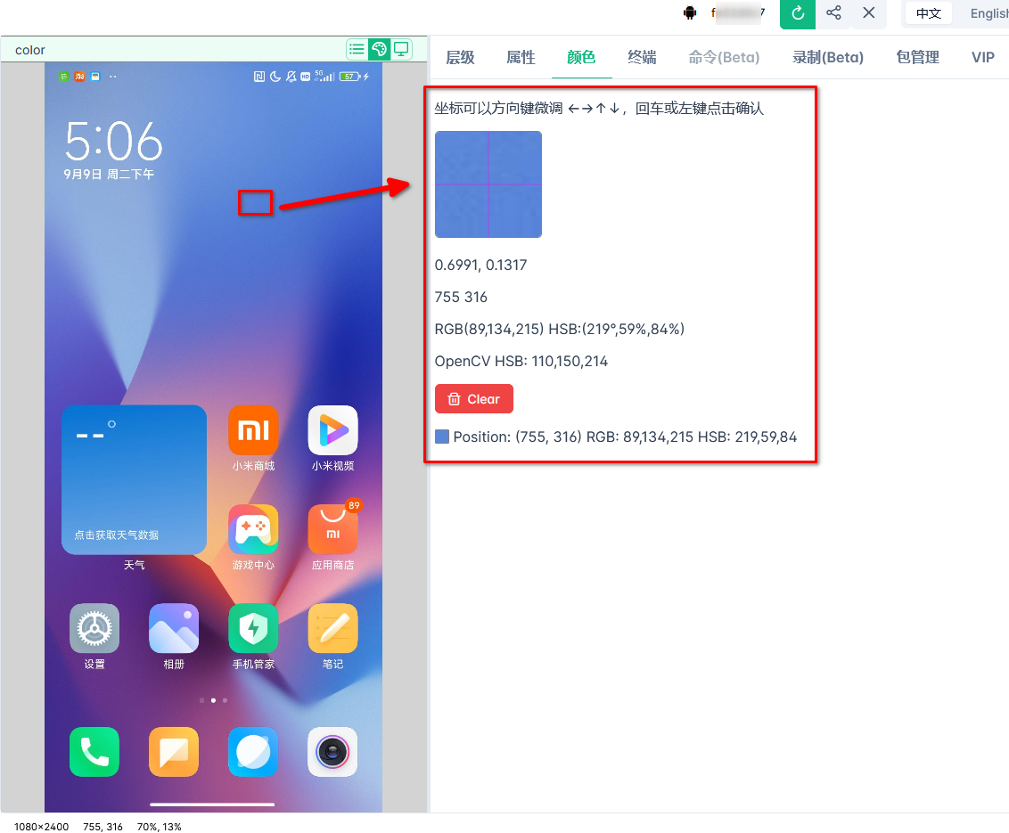 颜色获取:点击颜色,进入颜色 Tab 界面