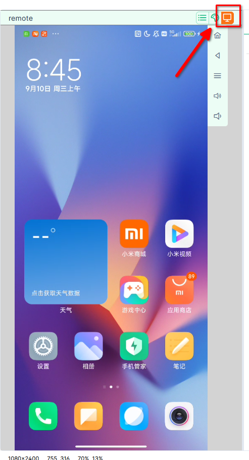 6. 远程控制:切换到该模式就可以通过鼠标控制手机了