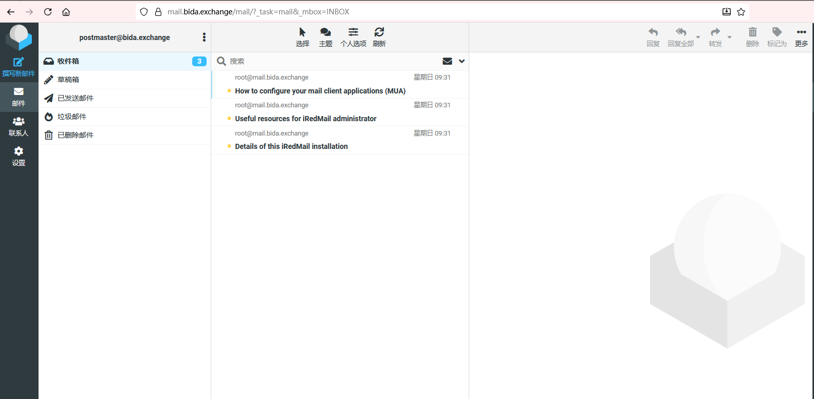 然后再浏览器重新打开 https://mail.bida.exchange/mail/ 就发现已经可以正常打开并登录了