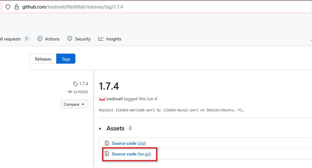 wget https://github.com/iredmail/iRedMail/archive/1.7.4.tar.gz