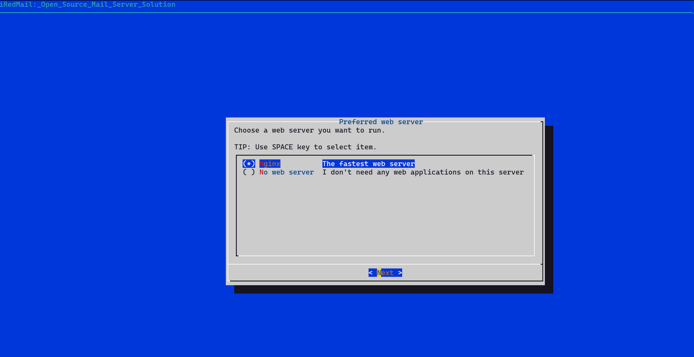 $ sudo bash iRedMail.sh