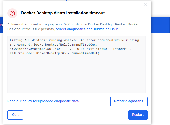 这个报错 Docker Desktop distro installation timeout 是 WSL2 环境超时 / 异常 的问题: