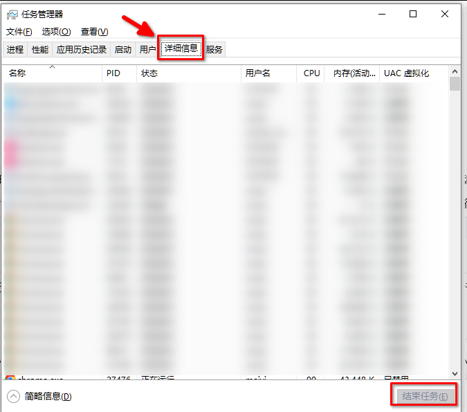 3.2 在详细页面,搜索 wsl.exe、wslservice.exe、lxssmanager.exe 并结束进程