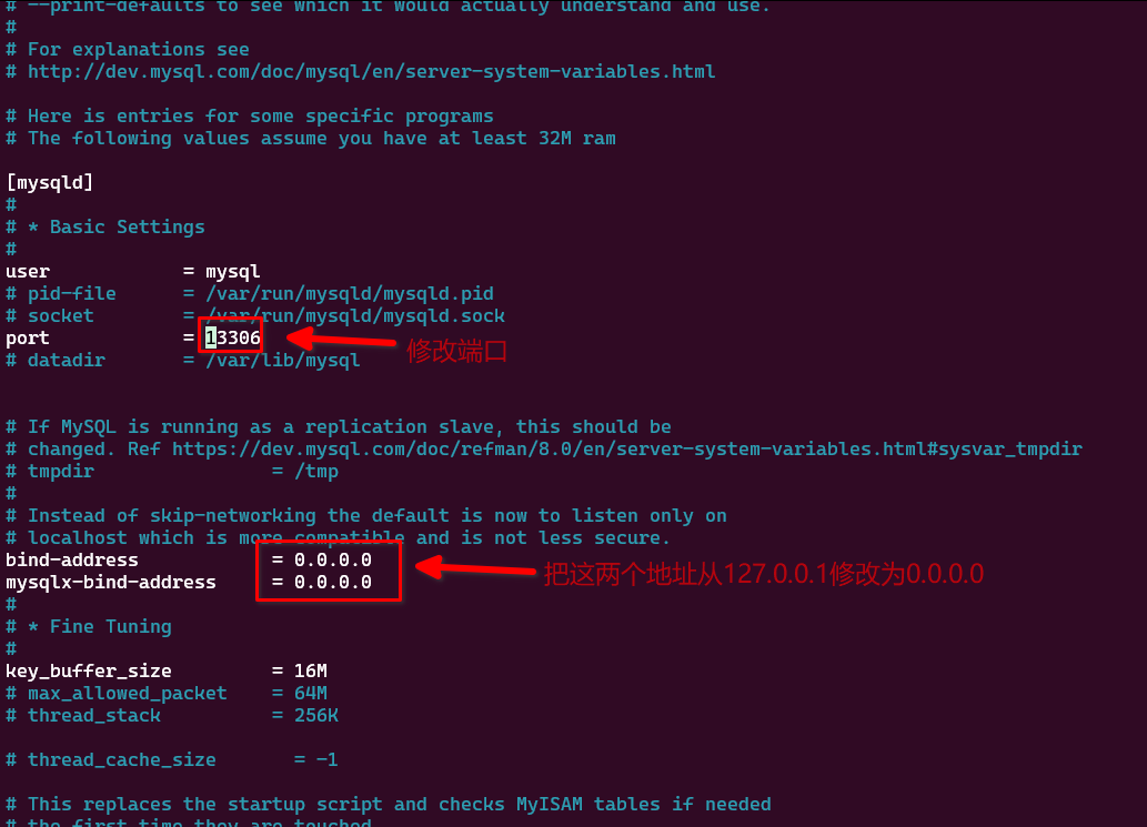 1. 打开 sudo vim /etc/mysql/mysql.conf.d/mysqld.cnf 文件