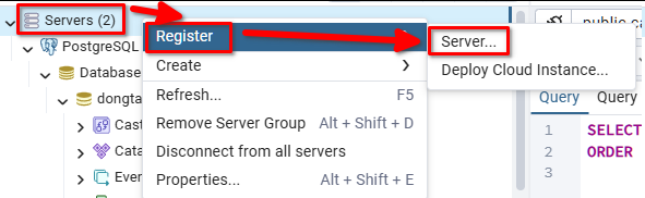 2. 右键点击 Servers -> Register -> Server
